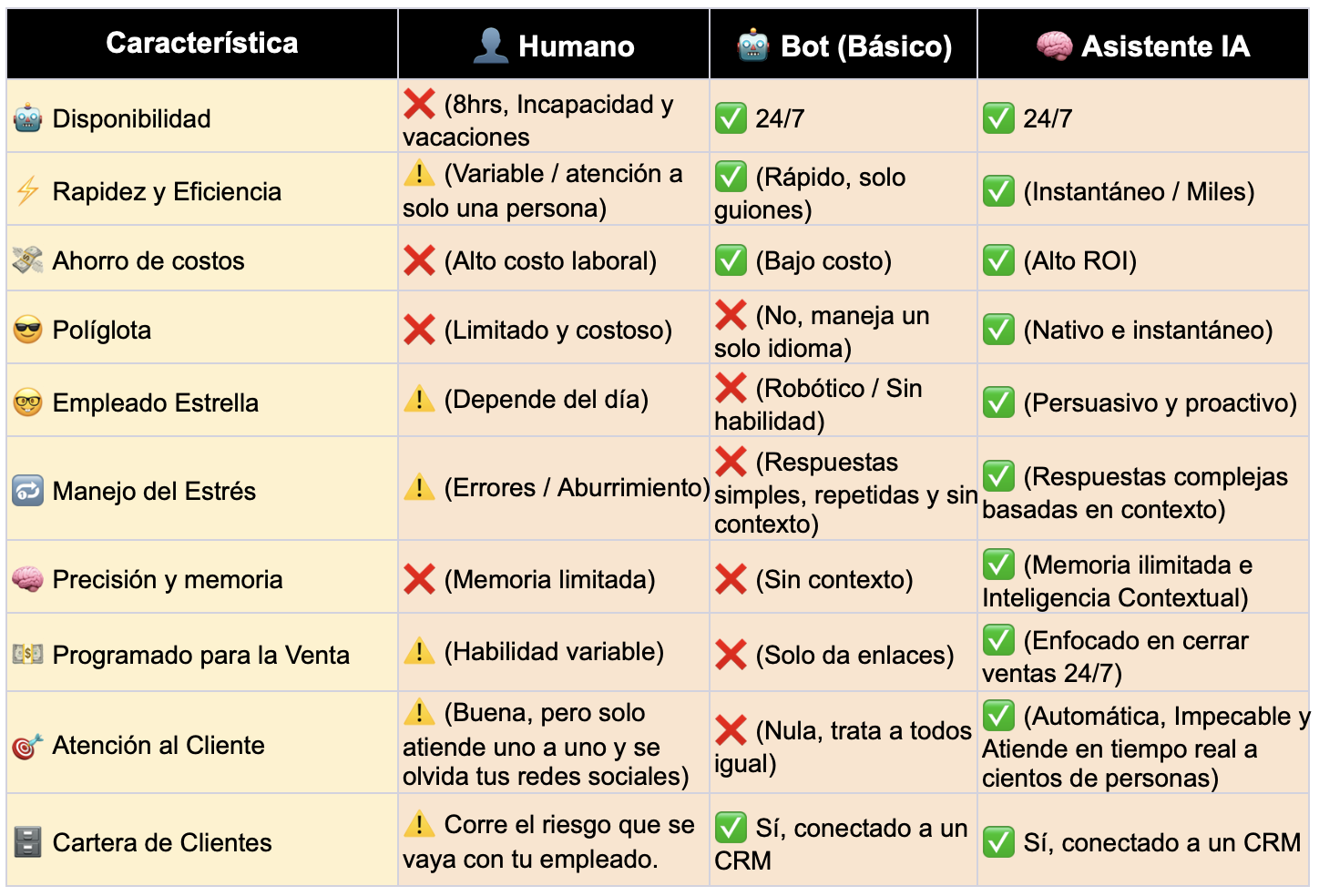Tu Agente "interpreta" intenciones del cliente, identificando si estan molestos, piden devolución, o si ya están listos para comprar y los filtra.